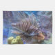 The lovely lionfish on this Kitchen Towel by ZoeSPEAK is swimming in a colorful saltwater aquarium. It is Zoe’s original photograph showing the pattern of thick and thin stripes and fancy fins on this unusual looking fish. It is a colorful photo with the tropical blue, yellow and pink of the aquarium and the salmon pink nose of the fish.