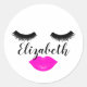 Lips and Eyelashes Custom Name Classic Round Sticker