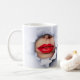 Image of lips wearing red lipstick with ripped paper illusion novelty.