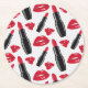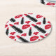 Lipstick And Lips Polka Dot Pattern Round Paper Coaster