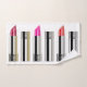 A fun striped pattern of colorful lipsticks in chrome tubes. Very girly and modern. Looks like a lipstick city skyline. In colors of white, chrome, red and pink.