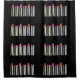 A fun pattern of colorful lipsticks in chrome tubes on a black background. Very girly and modern. Looks like a lipstick city skyline. A whimsical cosmetic / makeup theme.
