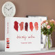 Stylish elegant specific appointment book binder or documents and activities organizer for independent beauty artists, beauticians, distributors or beauty salons with lipstick swatches in red shades. Personalize it with your name and text on front, spine and back!