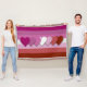 Throw blanket with an image of hearts in the colors of the lipstick lesbian pride flag, on a background with the lipstick lesbian pride flag.