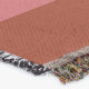A quality printed throw has its advantages. This is a much finer weave throw than its loopier cousins, and though lighter, it is worth the investment for custom room accessorizing. The back is much prettier than the typical brown, and the fringe on the long sides very vivid, the selvage nicely done. Before photographing, I washed the throw in cold water, delicate, with a thicker woven throw the same size. On tumble dry low, this throw was dry in half the time as the other. This is a very practical quality if you use throws for furniture covers or to wrap up in frequently. The sleekness of the fabric makes it a great layer for accenting or protecting without the feeling of sitting on too much stuff. Perfect for napping or when you feel a light chill coming on. The color printing is beautiful and on this fabric, matched the design and color of my Photoshop image. This is an advantage for blending room fabrics and colors. The fringe on the short sides prints the colors from the design image and therefore varies from the side fringe. I streaked a white fractal line through the plaid pattern to give the illusion of weaving. This printed as crisp as an illusory thread, and put some white in the short side fringe, showing another advantage of print vs loomed- for artistic purposes, line lines, detail, and color integrity can be planned and preserved. My loomed throws have color limitations and more of a needlepoint texture. Print throws reproduce an exact image. The throw felt a little stiff straight out of the package, but this went away in the first delicate wash. Of course I searched the wash water for ink or bleeding and there was none.