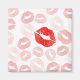 This fun pattern features multiple red lipstick prints on a white background.