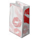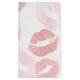 This fun gift bag features multiple red lipstick prints on a white background.