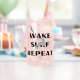 This cup features a dynamic graphic design of a person wake surfing, with a stylized wave below and a bird flying overhead. The words “WAKE SURF REPEAT” are prominently displayed above and below the surfer in bold, capital letters. This design captures the thrill and excitement of wake surfing, making it a perfect choice for water sports enthusiasts.