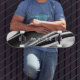Customize this sleek skateboard featuring a bold black and white liquid gradient background. Personalize it by adding your own text, choosing from various fonts, adjusting the size and position, and even incorporating clipart, photos, or shapes to make it uniquely yours.