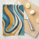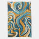 Liquid Swirl Ochre Blue Trippy Pattern Kitchen Towel