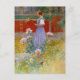 Vintage painting of young woman in her garden. Fine art by Swedish artist Carl Larsson.
