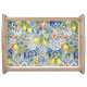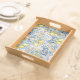 Elevate your home decor with this stunning blue lemon tile Serving Tray, featuring a vibrant citrus and floral design inspired by Mediterranean tiles. The combination of rich blue patterns and fresh yellow lemons creates a warm and inviting summer rustic decor.