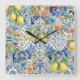 Lisbon Blue Lemon Tile Citrus Kitchen Decor Square Wall Clock