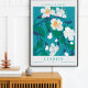 A serene and soulful design blending Portuguese coastal inspiration with a modern minimalist aesthetic. This illustration features elegant, cascading white flowers with golden centers, set against a deep, textured teal background that evokes the timeless beauty of Lisbon.