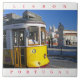 A beautiful view of one of Lisbon's yellow trams in Portugal printed on a souvenir ceramic tile.