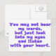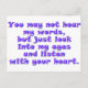 (multiple products selected)"You may not hear my words but just look into my eyes and listen with your heart". The voice of a child with a disability is so often not heard. Listen with your heart and they'll tell you so much more than you ever could have imagined. This design is offered on t-shirts, mugs, hats, magnets, gifts and much more.