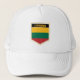 The national flag of Lithuania is infused into a shield shape with the country name added above the flag and inside the shield.