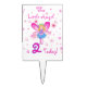 An adorable birthday cake topper any little girl is sure to love seeing on her birthday cake, features a little angel with pink wings and a blue tutu, lots of pretty pink stars, and text that reads 'This Little Angel is 2 Today!'.