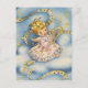 Adorable vintage illustration of a little golden haired angel playing her harp.