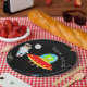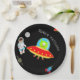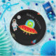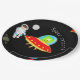 This cute outer space theme party plate features a little astronaut explorer taking a walk through space, along with little green men in UFO's, rocket ships, Jupiter and the moon all around him. In the background is the vast, black emptiness of space....(of course!). This cute plate has been designed especially to match an existing birthday party set with this design on, which also includes matching party invite, stickers, party hats and other party favors which you can see here: https://www.zazzle.com/collections/little_astronaut_in_outer_space_birthday-119253393331821240 (Oh, and the text 'Space rations' can be customized to suit, i.e. you could substitute a name in there or a date if you wish, or even removed altogether if needed). Thanks for looking! 👽
