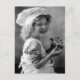 Vintage black and white photo of a cute little girl with a smile, wearing a baker's hat and apron, and eating pie. Photo: Donald Roberts, c1899.