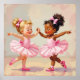 Cute poster with an illustration of two cute little ballerinas dancing together. One is Caucasian and one is African-American.
