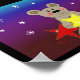A celestial scene features a small teddy bear clutching a garland of colored stars, with tiny stars and snowflakes enhancing the backdrop. Childlike sweetness on this poster.