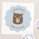 An adorable little teddy bear cub on a blue modern wavy background for a fun baby shower. Change the text to customize. Original art by Nic Squirrell.