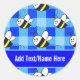 Little Bee Blue Plaid Pattern Custom Name Classic Round Sticker