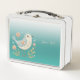 Beautiful Little Bird Floral Embroidery Green Metal Lunch Box