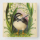 Little bird surrounded by flowers and greens within a modern clock edge design.