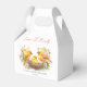 Little birdie hatching soon spring baby shower template favor box personalized baby shower favor boxes pair of cute yellow canary birds with a hatchling chick in a nest with spring blooms baby shower favors