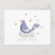 An adorable illustrated "miss you" postcard, perfect for sending to those you can't be with! This design features a sweet little blue-gray catbird standing among pretty red and pink flowers. A lovely design for your friends, family, students, or anyone you're missing, especially during these times of social distancing.