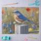 A delicate little Blue bird is perched gracefully atop a weathered old fence post in a field of beautiful wild flowers. This little bird is a symbol of freedom, tranquility, and the simple joys of the countryside, and this scene captures the timeless harmony between wildlife and nature.