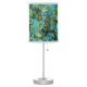 Accent a bedroom or night stand with this small table lamp with lamp shade that features a photo image of the little, blue flowers and variegated leaves of the Brunnera Jack Frost plant. A lovely, floral design! Select your lamp shade style along with border accent color and lamp base finish.