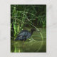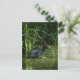 An original photograph of a Little Blue Heron, searching for his dinner in a small pond, surrounded by water Iris foliage.