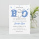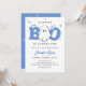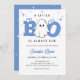 Get ready for giggles, grins, and ghostly glee with this charming baby shower invitation designed just for your little boo. Set against a white backdrop, the phrase “A Little Boo is Almost Due” takes center stage in whimsical, eyeball-inspired typography in blue complete with a peek-a-boo ghost and soft blush stars to add a touch of charm. Perfect for celebrating mamas-to-be who love a sprinkle of spooky with a whole lot of sweet, this design blends eerie elegance with adorable delight.