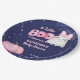 Little boo Halloween cute baby girl ghost baby shower tableware personalized plates. A cute baby ghost with a pink hair bow watercolor pink pumpkin on a dark starry night background for Halloween themed baby shower.