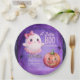 Little boo Halloween cute baby ghost with a pink bow baby shower monogrammed paper plates customized plates template, Halloween themed girls baby shower personalized paper plates personalized table decor Halloween baby shower party supplies