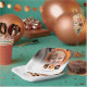 Our Little Boo is Turning Two Photo Halloween Birthday Partyware. A fun design for your little one's second birthday around Halloween. Boo is in a fun set typography with decorated with spooky Halloween elements. Easily personalise the rest of the text and replace the sample image with your own.