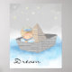 Lovely little boy's room decor wall poster artwork of a young boy in a newspaper hat boat under the stars. Dream in blue text can be personalized to read what you want.