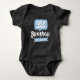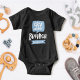Announce the arrival of your new family member with this fun and cute little brother baby announcement baby bodysuit. Design features a fun typographic design with "Lil" designed in a speech bubble and pointing to "Brother" Personalize the banner on the front with the child's name and monogram in a star on the back. All of the graphic colors can be changed to suit your preference. Perfect for a gift for the parents or worn in a fun photo to post on social media.