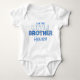 I am the little brother personalized newborn baby boy t shirt bodysuit in baby blue color. Cute custom personalized design with baby's name. A simple style with a cute script. Makes a wonderful newborn gift idea.