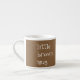 It's brown. It's little. It's a little brown mug you can serve espresso in. Nice gift for a coffee lover or a jazz lover!