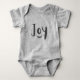 Dress your little one in pure happiness with our "Joy" printed Baby Bodysuit! Made from soft, breathable fabric, this adorable bodysuit ensures your baby stays comfy while spreading cheerful vibes. Perfect for everyday wear, baby showers, or as a thoughtful gift for new parents. Let your little bundle of joy shine bright with this stylish and heartwarming design!