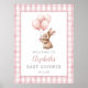 This charming baby shower welcome sign features a cute baby bunny holding balloons and a pink gingham background, and can be personalized with your name and special date. Designed by Thisisnotme©
