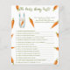 Gender neutral baby shower invitations. Featuring the saying 'A LITTLE BUNNY IS ON THE WAY!', an illustration of a watercolor bunny (rabbit) with carrot in paws, and many orange color carrots. Matching items available.