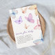 Encourage the love of reading from the very start with our charming "A Little Butterfly is on the Way" Books for Baby Cards. Adorned with graceful butterflies and personalized details, these cards are a delightful addition to your baby shower, inviting guests to contribute to the new baby's library and fostering a lifelong love of literature.