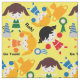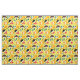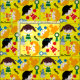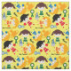 Little Cheerleaders fabric, a cute, fun cheering design on a yellow background featuring cheerleaders with uniforms and pom poms of orange, green, red, and blue, megaphones, ribbons, and text that reads Go Team and Rah!