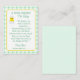 A little chick and green check border card featuring green type fonts to compliment the fun, informal and whimsical design. Timeless !